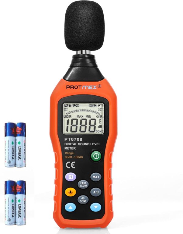 Il VLIKE VL-817A è un fonometro “accendi e vai”. Ha un grande display retroilluminato, offre le ponderazioni A e C, la risposta Fast/Slow e una funzione per registrare il valore massimo e minimo.