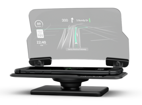 Si tratta di un supporto trasparente che si posiziona sul cruscotto e sul quale proietti le informazioni dal tuo smartphone.