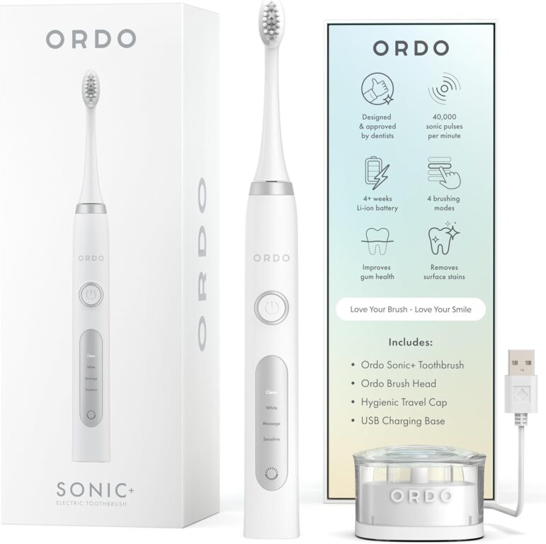 L’Ordo Sonic+ è uno spazzolino elegante, leggero e incredibilmente piacevole da usare. Offre 4 modalità di pulizia e una potenza di 40.000 vibrazioni al minuto, più che adeguate per una pulizia profonda.